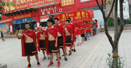 8月15、16日,炎热酷暑下的凯旋东岸售楼部依然人头攒动,围观的群众不断从四面八方涌来,随着斯巴达勇士的惊艳亮相,现场更是一片人海。上午九点,在喧闹的人声中,斯巴达勇士一行人以凯旋东岸售楼部为起点,拉开了巡游大丰全城的序幕。