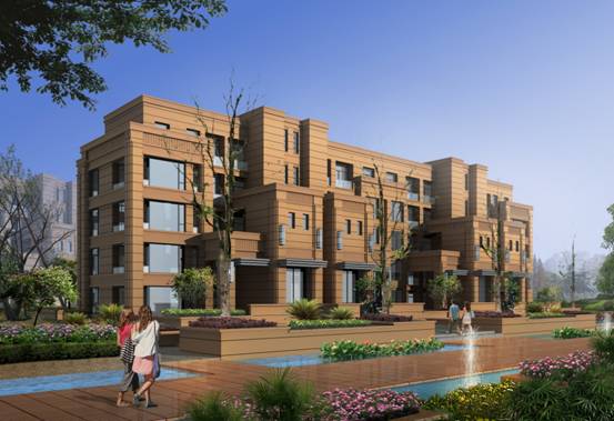 LOFT、写字楼、住宅、底商立面效果(3层以下商铺为咖啡色石材,3层以上为咖啡色面砖)