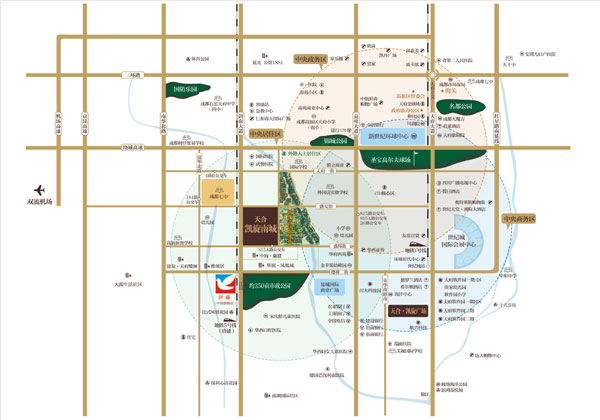 (成都七中隔街相对、伊藤洋华堂中国旗舰店相距约150米、铁像寺国际水街一街之隔、350亩市政公园相距约200米)