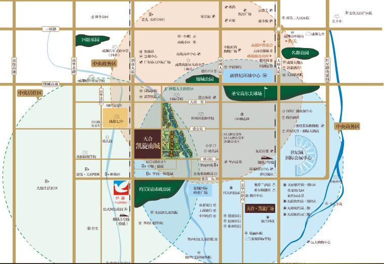 本项目位于剑南大道中段,成都七中斜对面,中海兰庭北侧,交通发达,方便快捷。 东来:从天府大道或地铁一号线的世纪城站到本项目,距离约1公里。可从“天府大道”在“天府一街”路口右拐,直行至“剑南大道”左拐可到;也可从“天府大道”在“德赛二街”路口右拐,直行过中海兰庭,在“剑南大道”路口右拐就到了。 南来:上“剑南大道”,过保利花园、过世豪广场,即到。也可乘公交车815路、815A路、26路至“益州大道中段北站”或“站华路出口加工区站”下,沿“盛邦街”前进100米即到。 西来:过“京昆高速”,上“盛锦三街”,在“剑南大道”路口右拐,直行即到。也可乘公交车184路,在“富华北路”站(成都七中)下,沿 “盛安街”直行200米即到。也可乘公交车4路B,或“富华路口”站(成都七中)下,直行100米,在“剑南大道路”口右拐,直行50米即到。 北来:可沿“益州大道”南行,在“盛邦街”路口(华府西苑)右拐,直行200米即到。也可沿“神仙树南路”、“剑南大道”南行,在“盛邦街”路口右拐即到。 此外,地铁5号线经过本项目,三江站距离项目约300米(目前了解到的站点:江河站-三江站-元华站-石羊立交站-神仙树站-永丰站-高升桥站-大石西路站-中医学院站-西门站-沙湾站-火车北站-驷马桥站,如有变动或出入,请以权威部门发布为准),目前未出运营时间表。 从本项目到双流机场,距离6.2公里。自驾车路线为:剑南大道——盛锦三街——黄荆路A——京昆高速/G5——成都绕城高速——双流机场。车行7分钟,打车费用为16~19元。