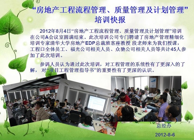 “房地产工程流程管理、质量管理及计划管理”培训快报